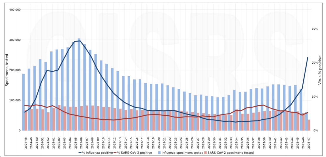 3、流感,报告截至2025年11月23日。