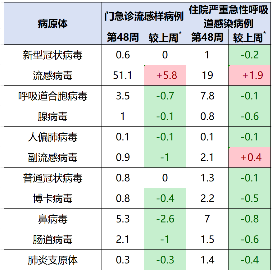 表 第48周呼吸道样本病原体核酸检测阳性率(%)