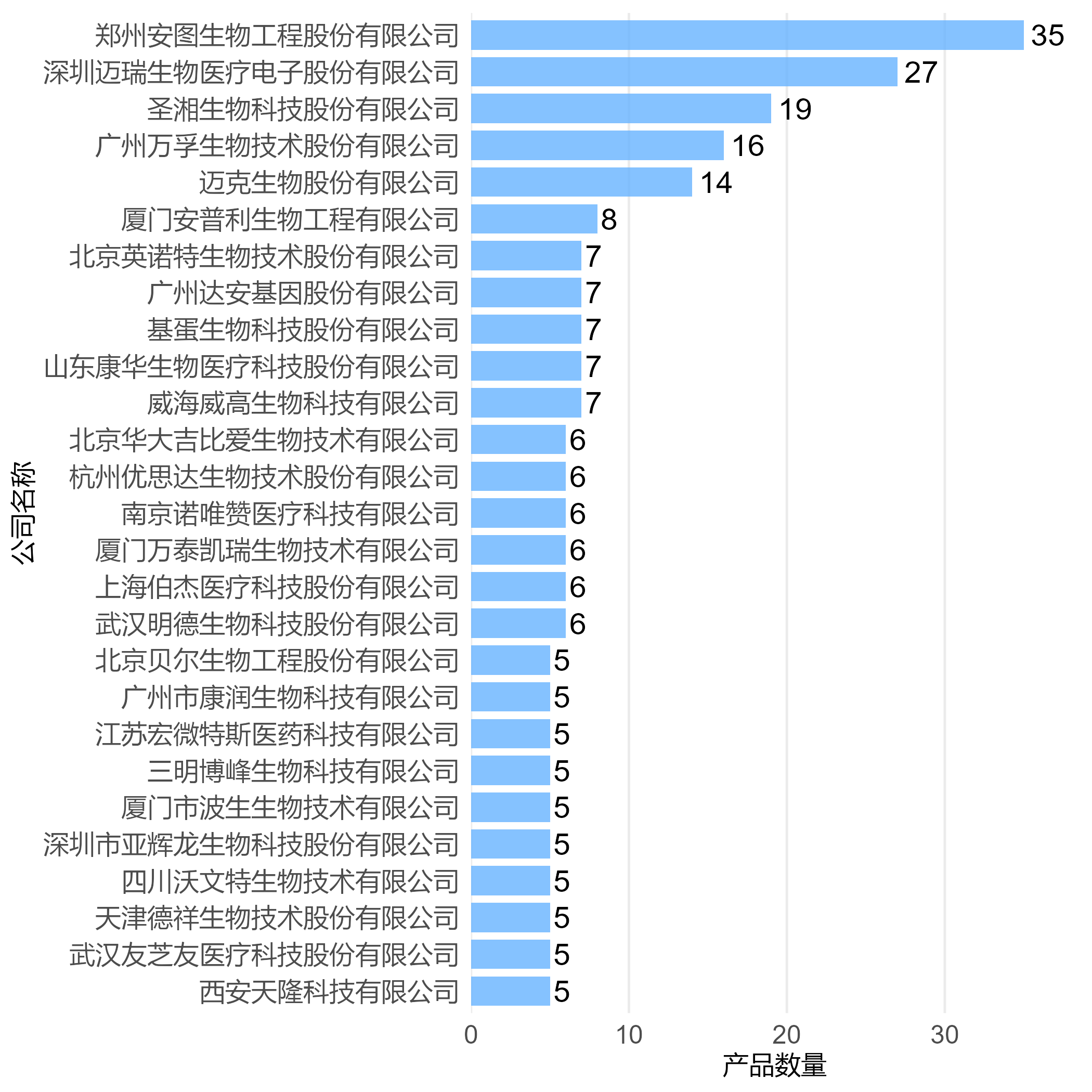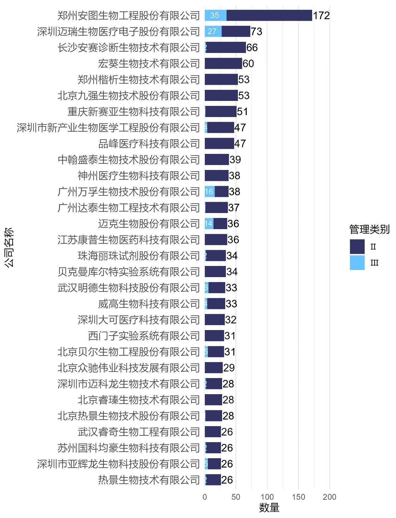 图10 2025年部分公司Ⅲ类产品获证数量