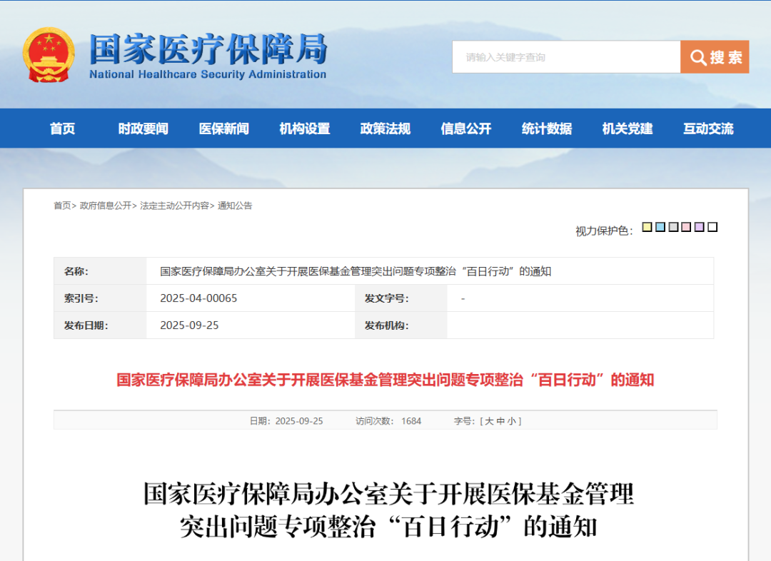 2、国家医保局启动专项整治“百日行动”,严打医保基金违规使用