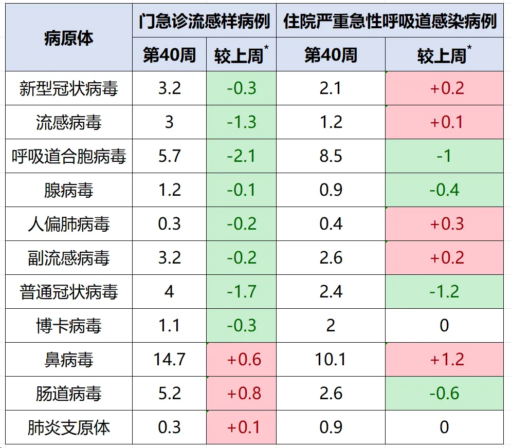 2025年第40周(2025年9月29日—10月5日),全国哨点医院报告的流感样病例数占门急诊就诊总数的比例(流感样病例百分比)为4.0%;