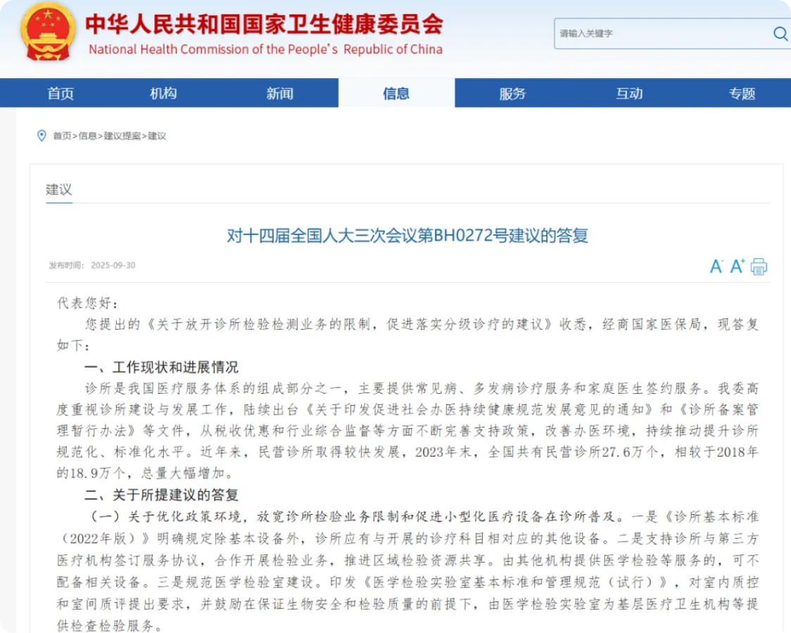 04、国家卫健委支持诊所开展检验业务,促进小型医疗设备普及