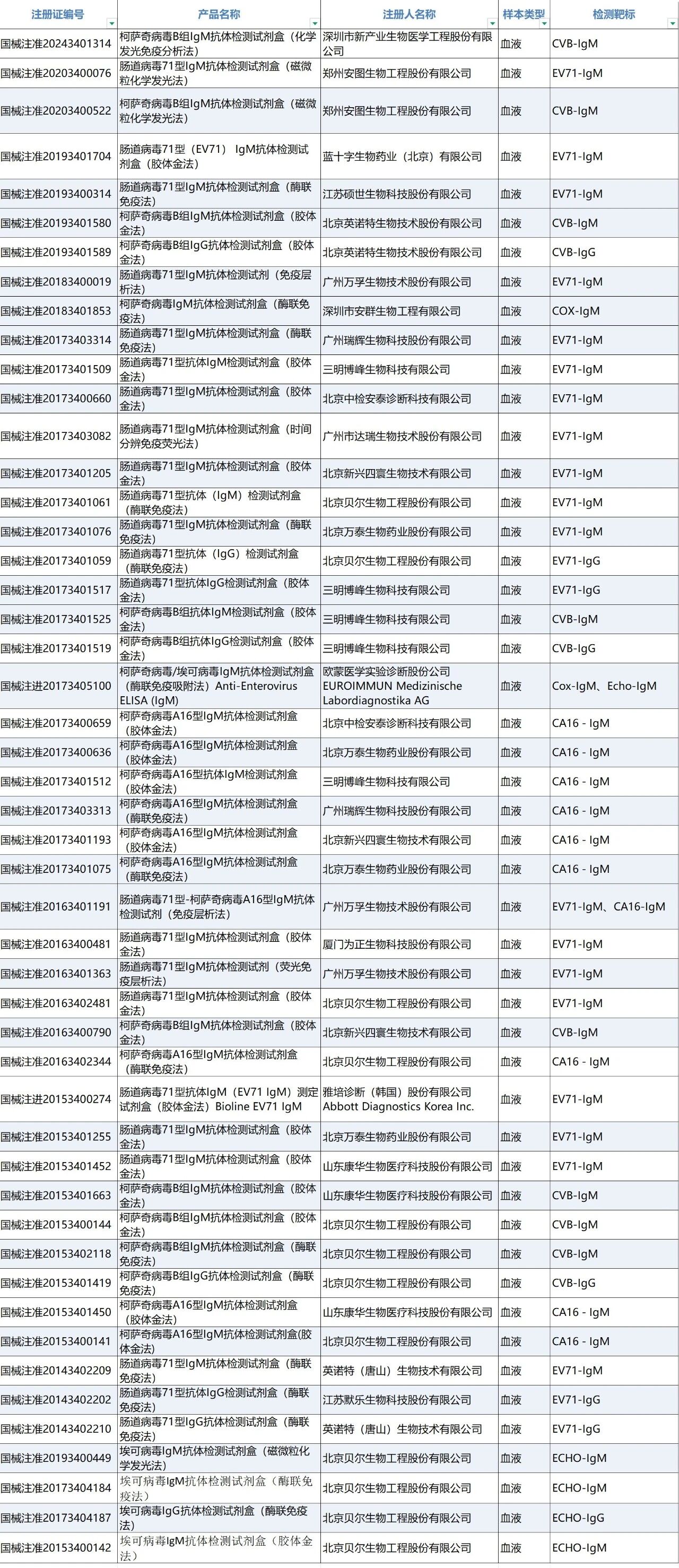 注:该表格注册产品为IVD注册产品