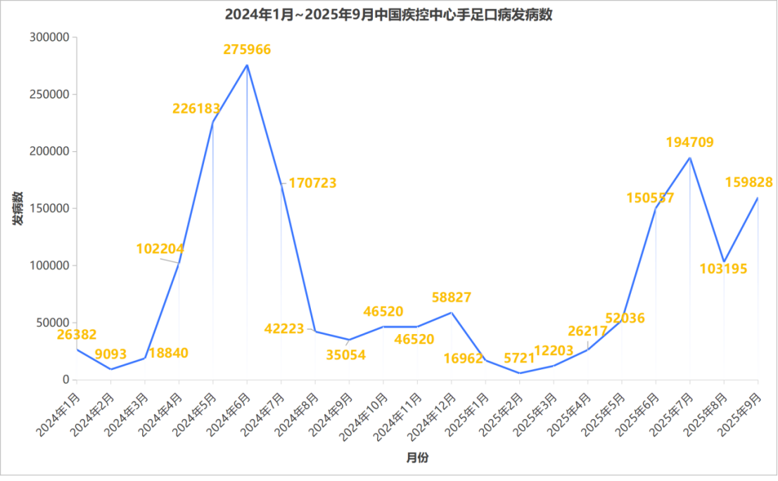 2024年,中国疾病预防控制中心统计手足口病的发病病例数超过百万。近期,手足口病也进入到爆发季。