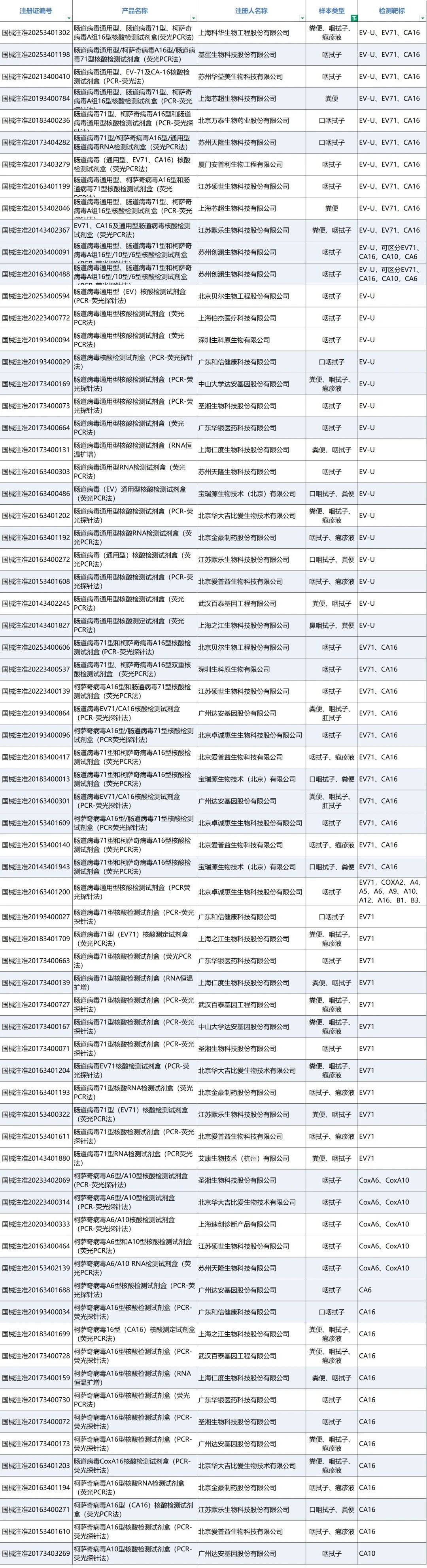 截至2025年10月,参考DataMed IVD数据中心(https://cndatamed.com/data/allcenter),国内获批的手足口病检测产品共119款。(详情见附表1)