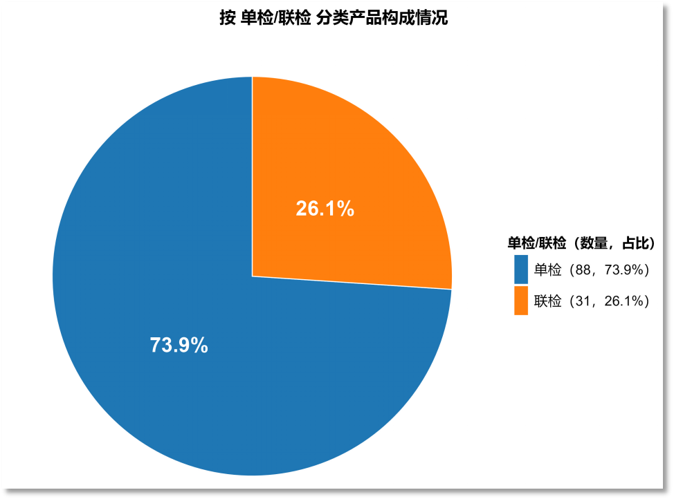 从检测方法上看,分子检测占73.9%,主要以qPCR为主,免疫检测占26.1%,主要以胶体金为主。