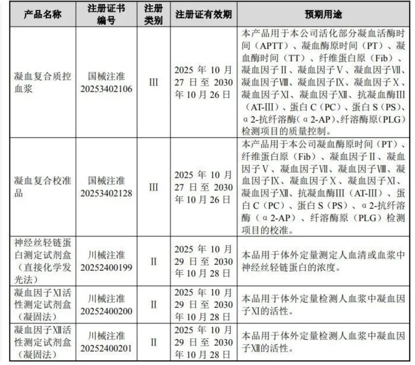 迈克生物公告,公司近日获国家及四川省药监局颁发的5项医疗器械注册证。此次获批产品中,凝血复合质控血浆等是凝血平台新增校准质控品,用于凝血相关检测;凝血因子Ⅺ、Ⅻ活性测定试剂盒为凝血平台新试剂,可监测相关因子缺乏或活性减低情况;神经丝轻链蛋白测定试剂盒是直接化学发光平台新试剂,用于创伤性脑损伤辅助诊断。截至目前,公司直接化学发光平台试剂类产品注册证已达139项。新证的取得丰富了公司产品菜单,有助于提升市场竞争力,对公司市场拓展和未来经营将产生积极影响。
