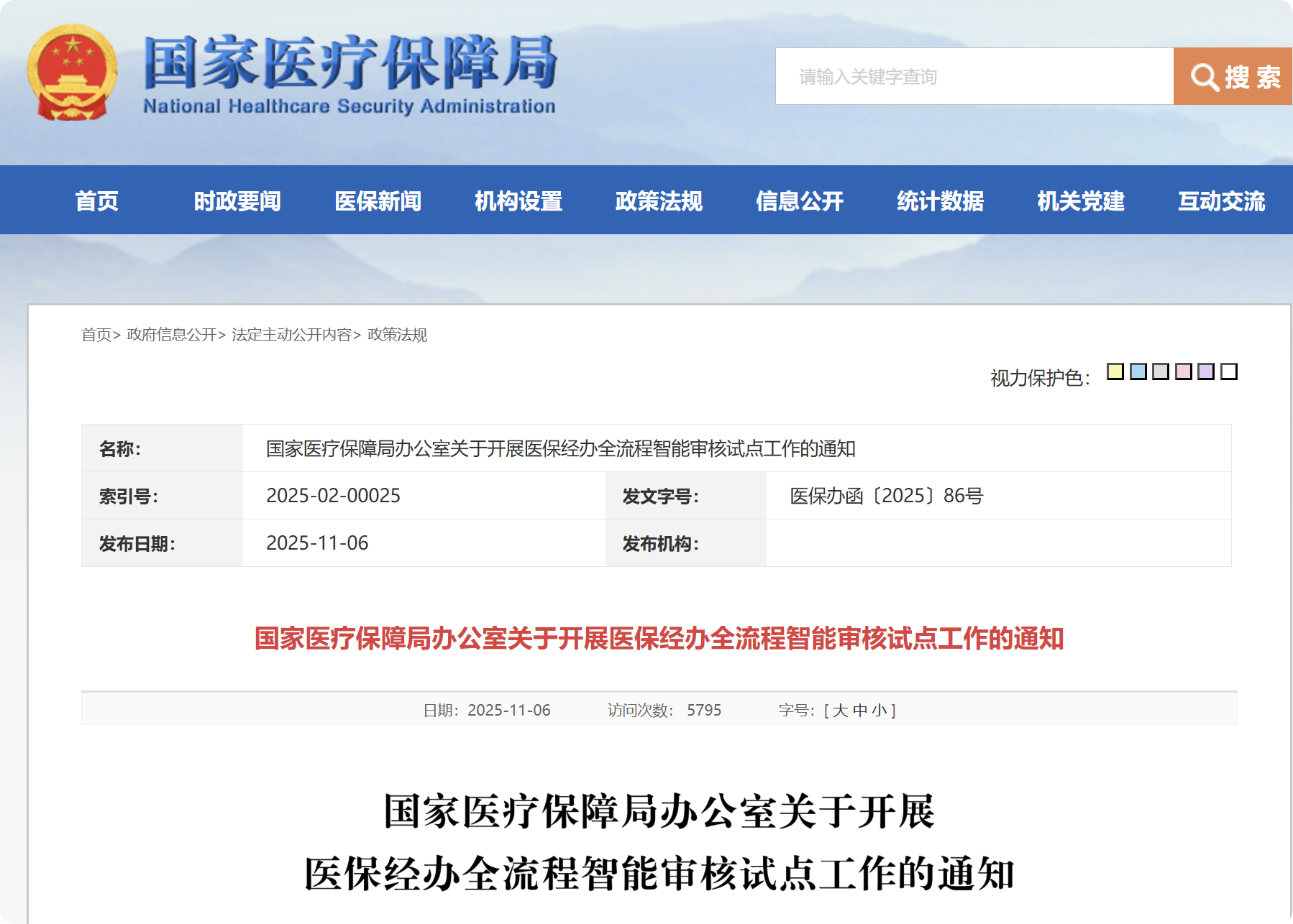 3、国家医疗保障局办公室发布了《关于开展医保经办全流程智能审核试点工作的通知》