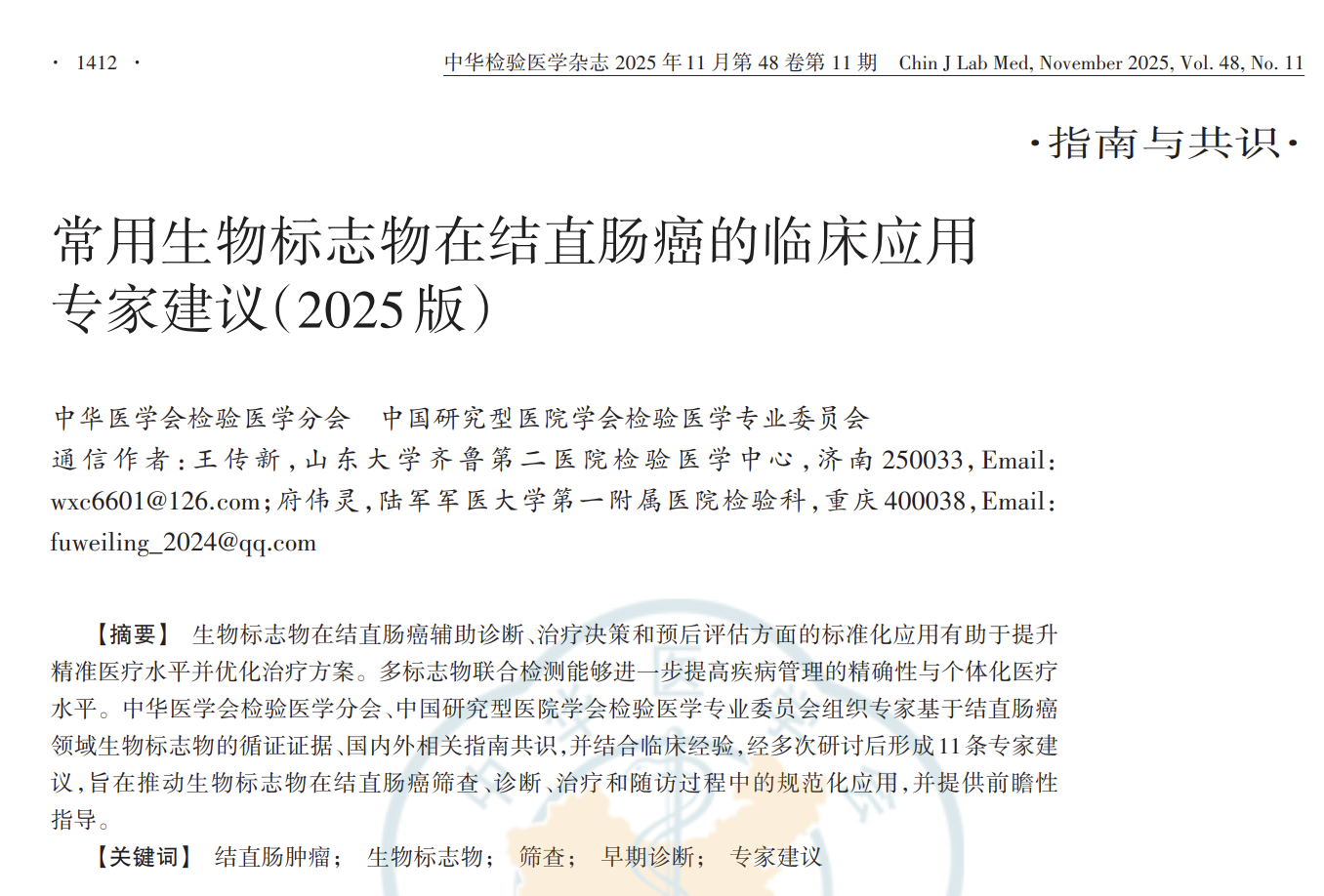 3、《常用生物标志物在结直肠癌的临床应用专家建议(2025版)》发布