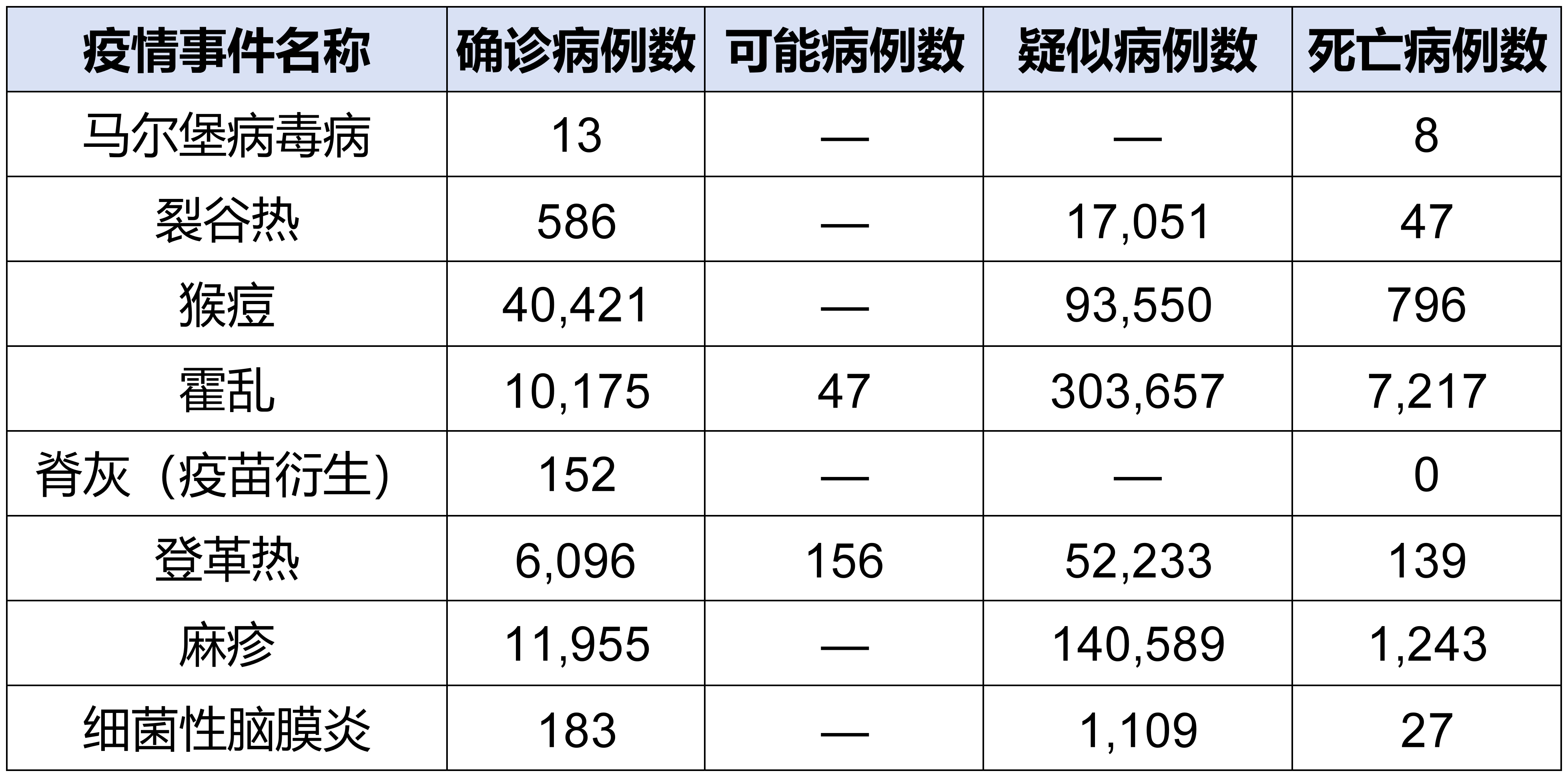 2024年全国法定传染病报告发病、死亡统计表