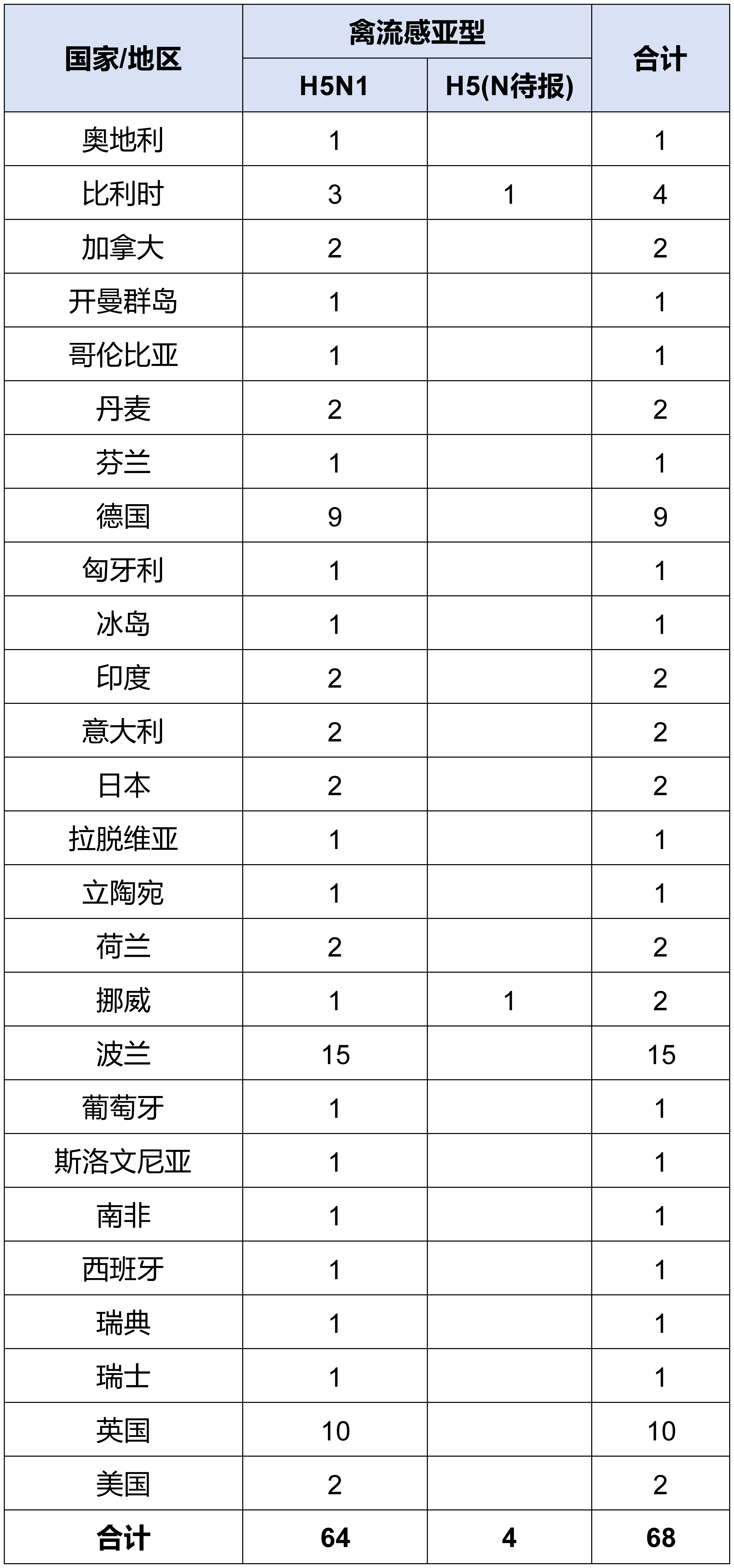 表 全球动物感染高致病性禽流感疫情事件