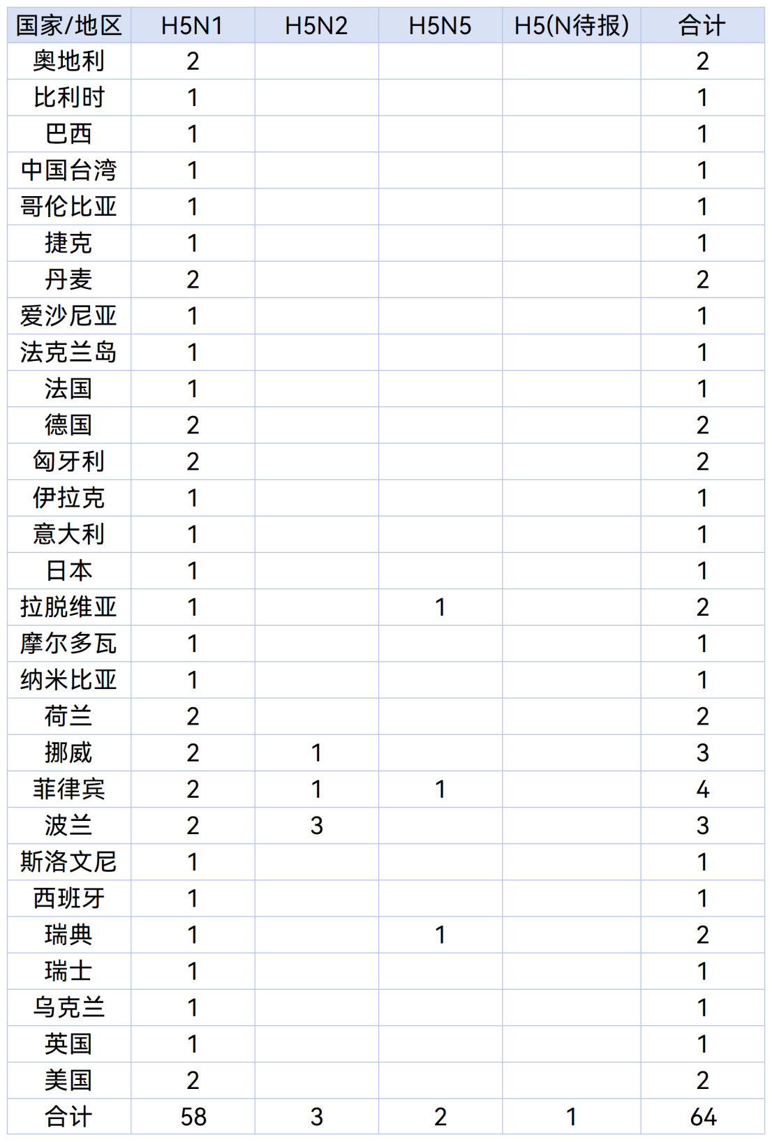 表 全球动物感染高致病性禽流感疫情事件
