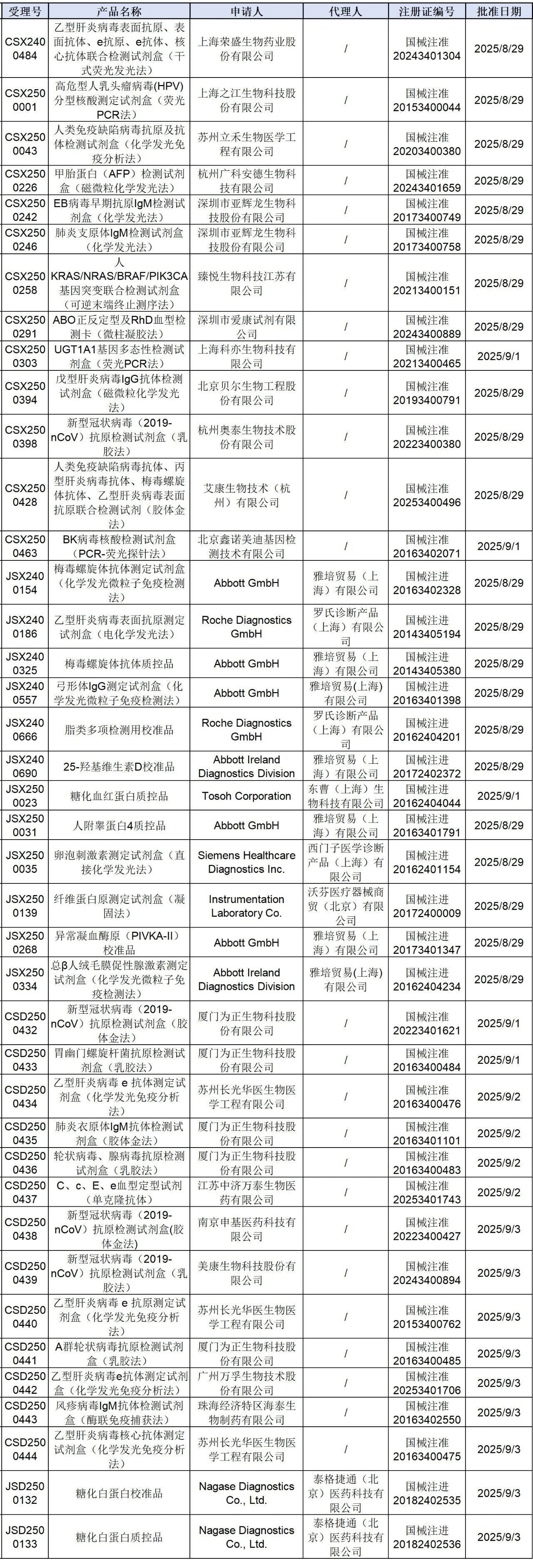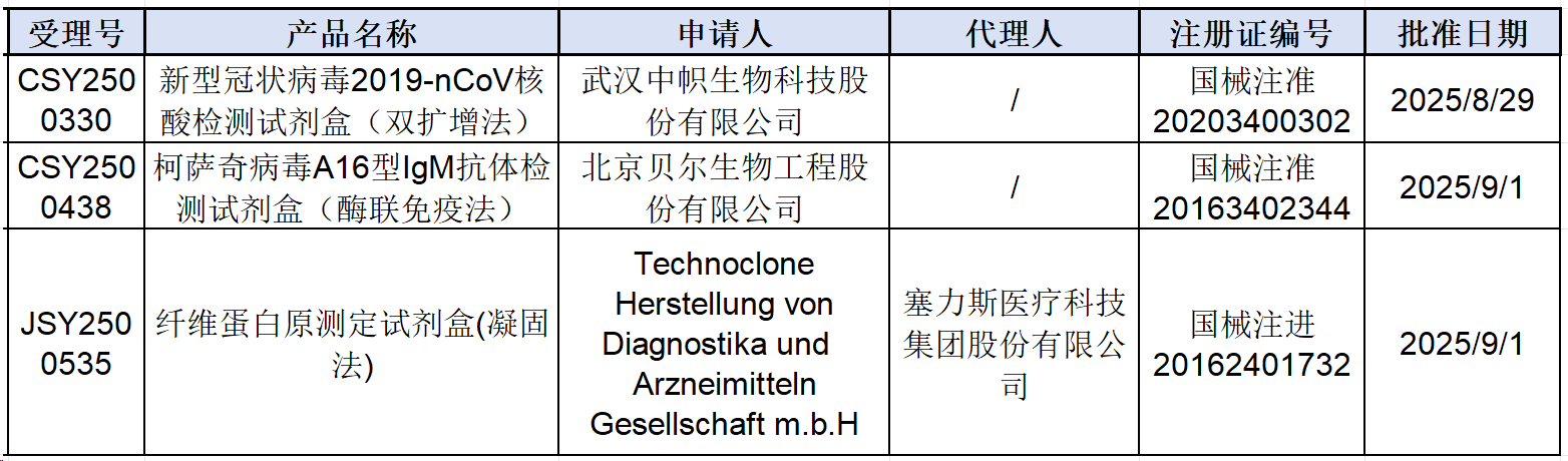 9月4日,国家药监局审批通过了114款医疗器械产品,3款IVD产品延续注册,40款IVD产品变更注册,2款IVD产品终止注册。