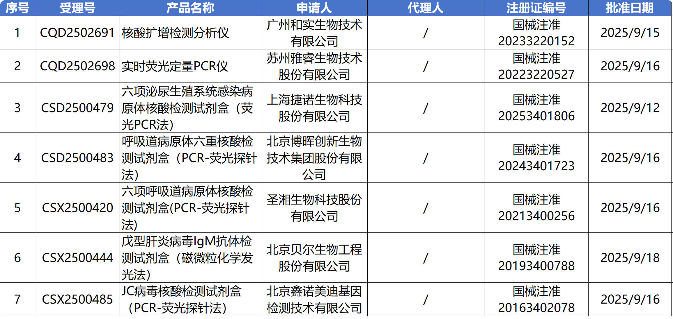 9月19日,国家药监局审批通过了117款医疗器械产品, 31款IVD产品延续注册,7款IVD产品变更注册。