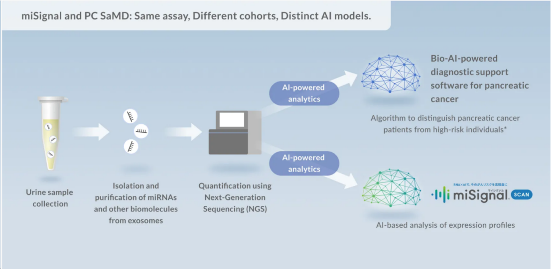 从其官网信息看,截至2025年4月,该AI算法能够检测10种不同类型的癌症,包括食道癌、胃癌、胰腺癌、肺癌、结直肠癌、卵巢癌、乳腺癌、肾癌、膀胱癌和前列腺癌。其中肺癌和胰腺癌早筛应是该公司目前着重打磨的产品。miSignal Scan 产品于2024年4月在日本启动胰腺癌诊断软件临床试验。