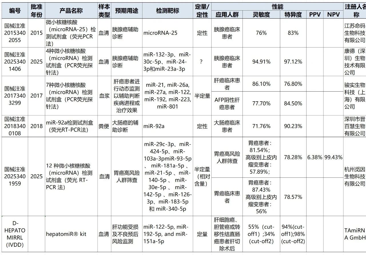 诺奖成果——miRNA标志物是肿瘤检测的另一新思路,2025年至今国内已有2款产品获批。本次针对国内外miRNA相关检测产品及公司,简要分析miRNA检测的挑战、产品特点与优势。
