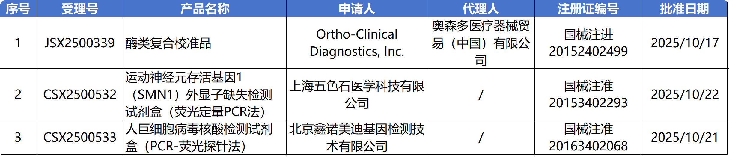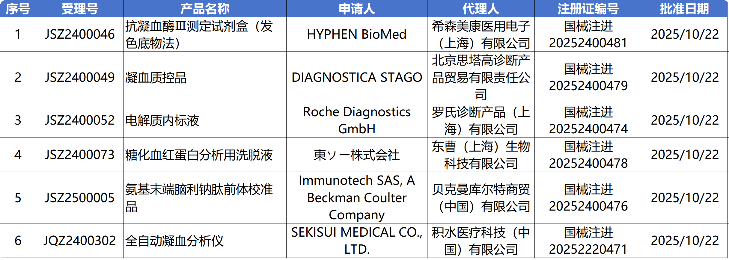 10月23日,国家药监局审批通过了143个医疗器械,其中有6个IVD新品获批上市,有3个IVD产品变更注册,有11个IVD产品延续注册,1款IVD产品终止注册。