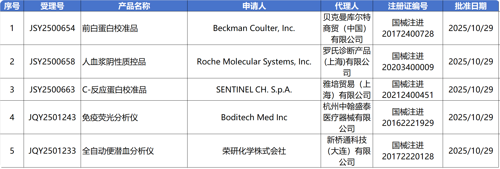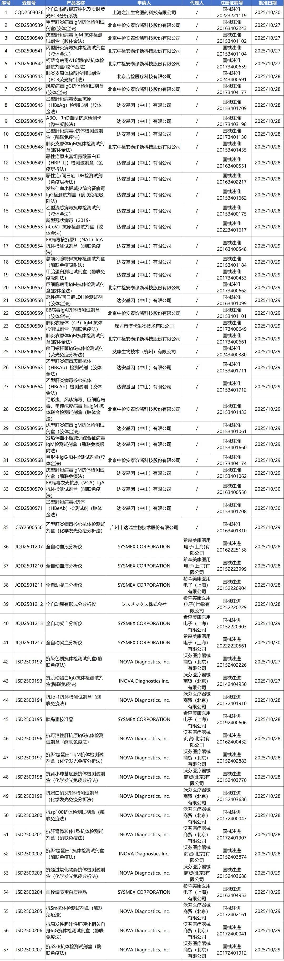 10月31日,国家药监局审批通过了166个医疗器械,其中有57个IVD产品变更注册,5个IVD产品延续注册。