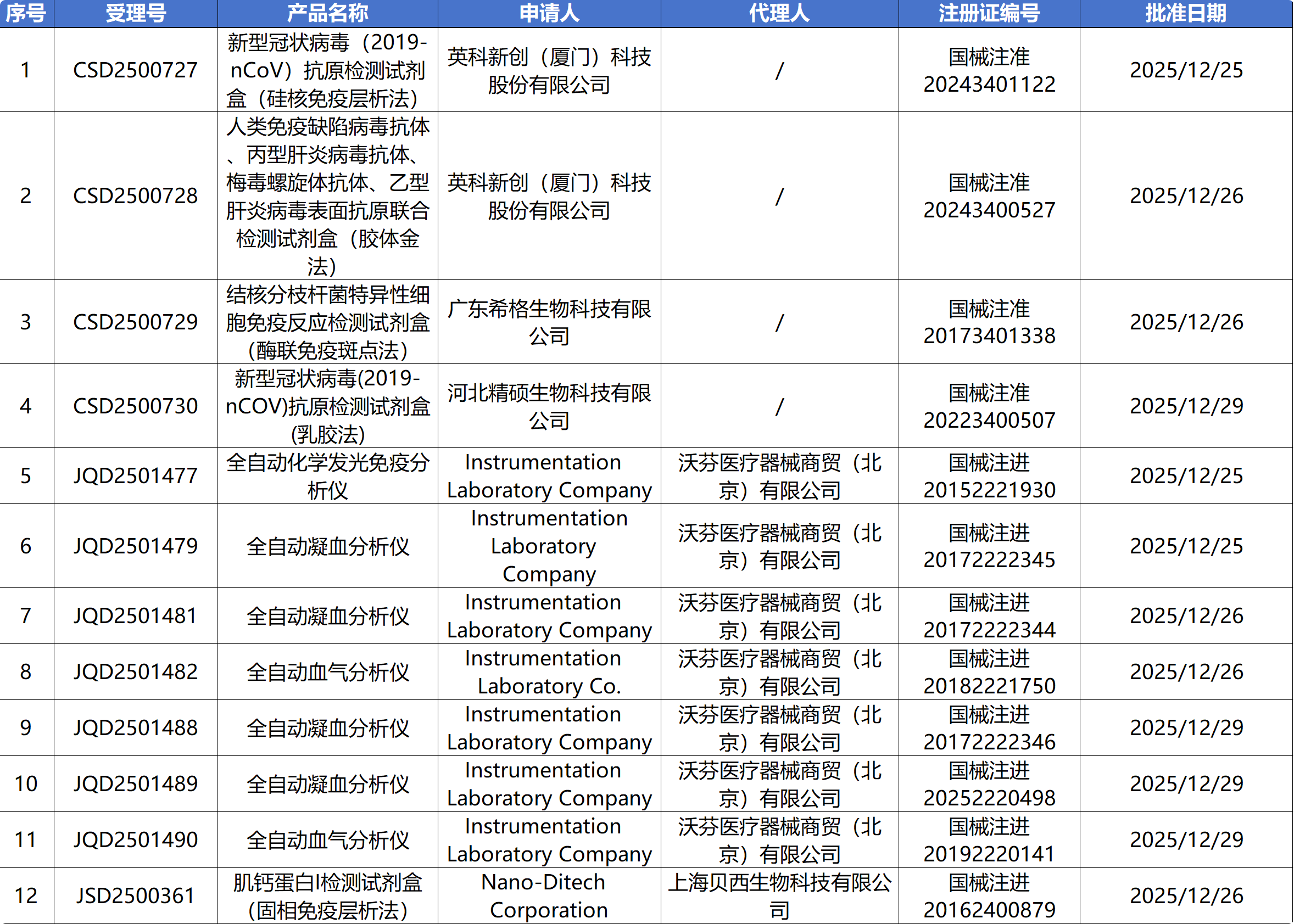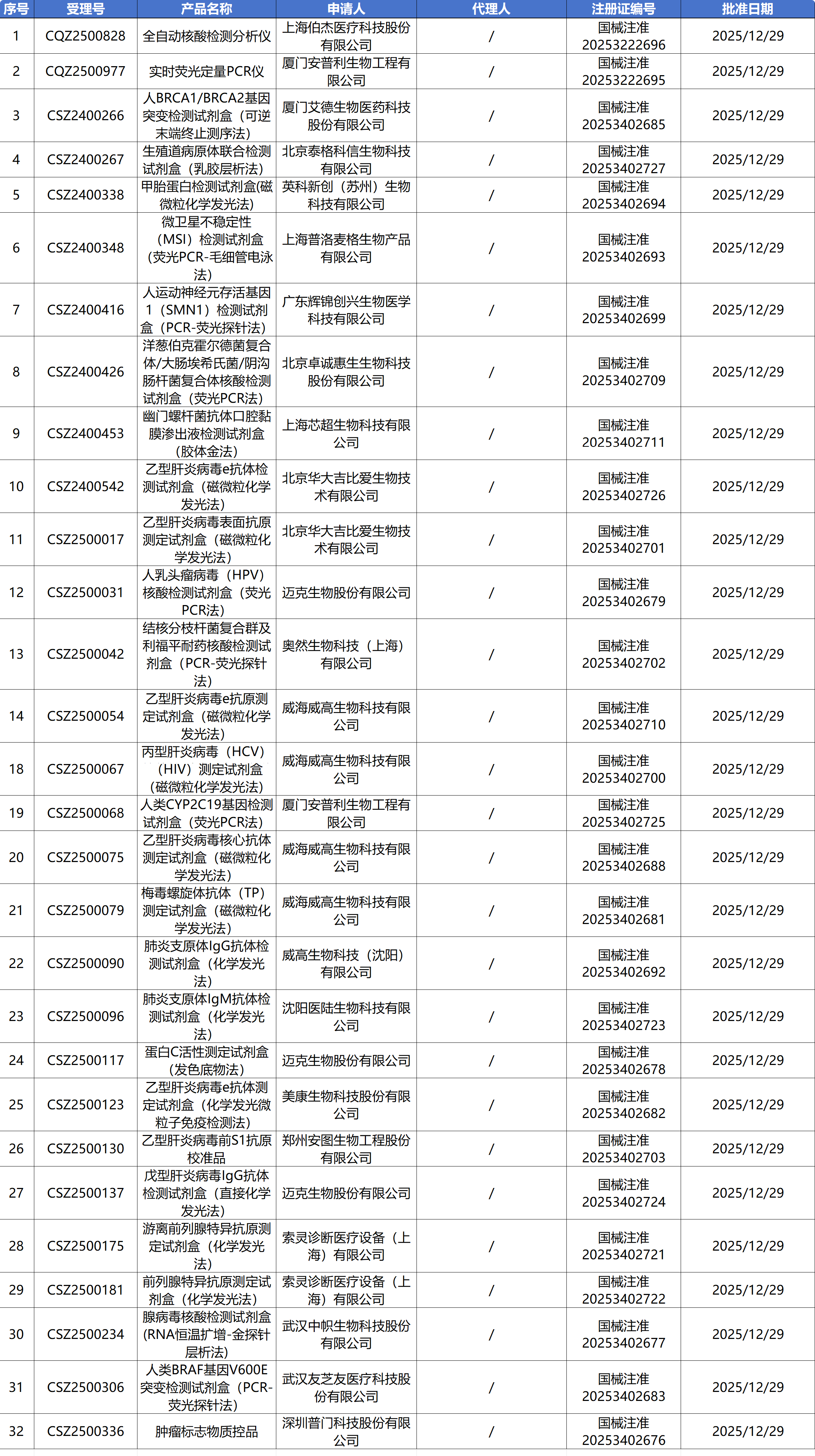 12月30日,国家药监局审批通过了118个医疗器械,其中有32个IVD新品获批上市,12个IVD产品变更注册。