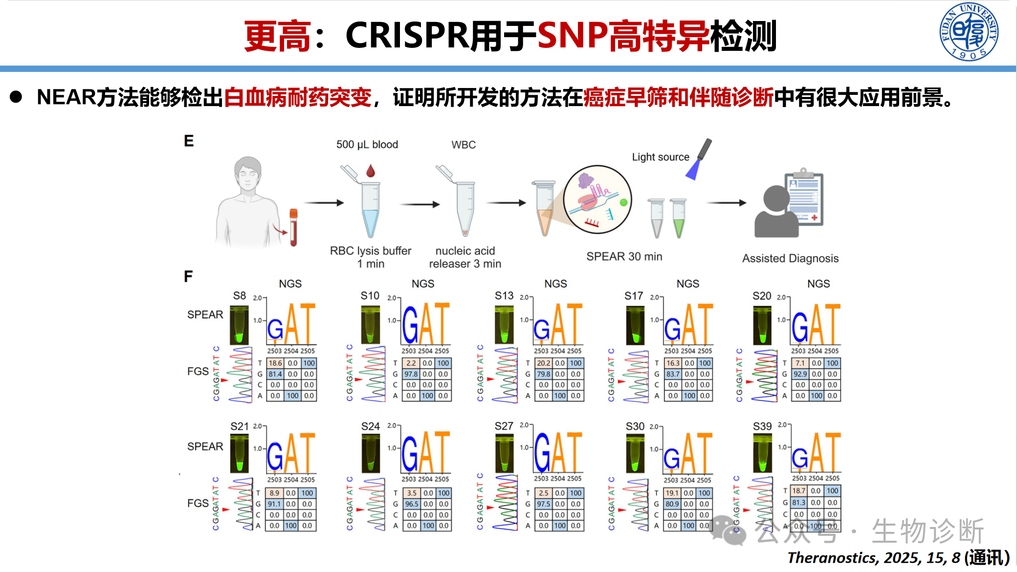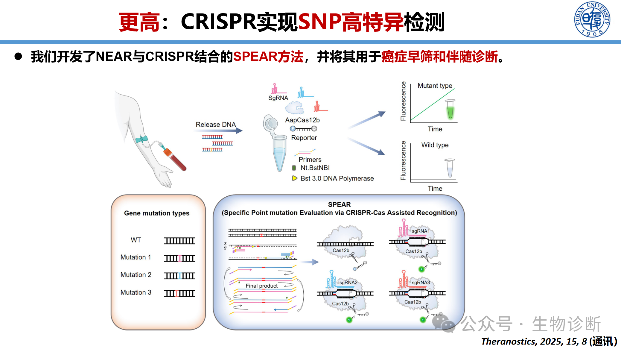 开发NEAR与CRISPR结合的一体化检测方法(SPEAR),用于癌症早筛和伴随诊断。
