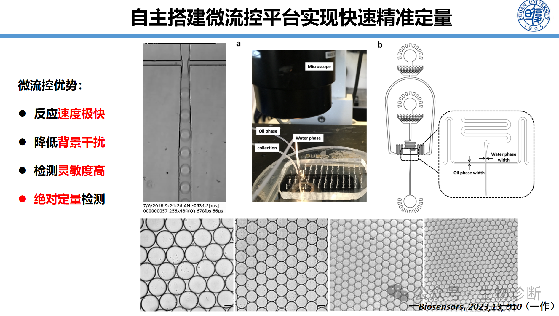 为了实现快速精准定量,自主搭建微流控平台,将样本分散至数百万个皮升级液滴: