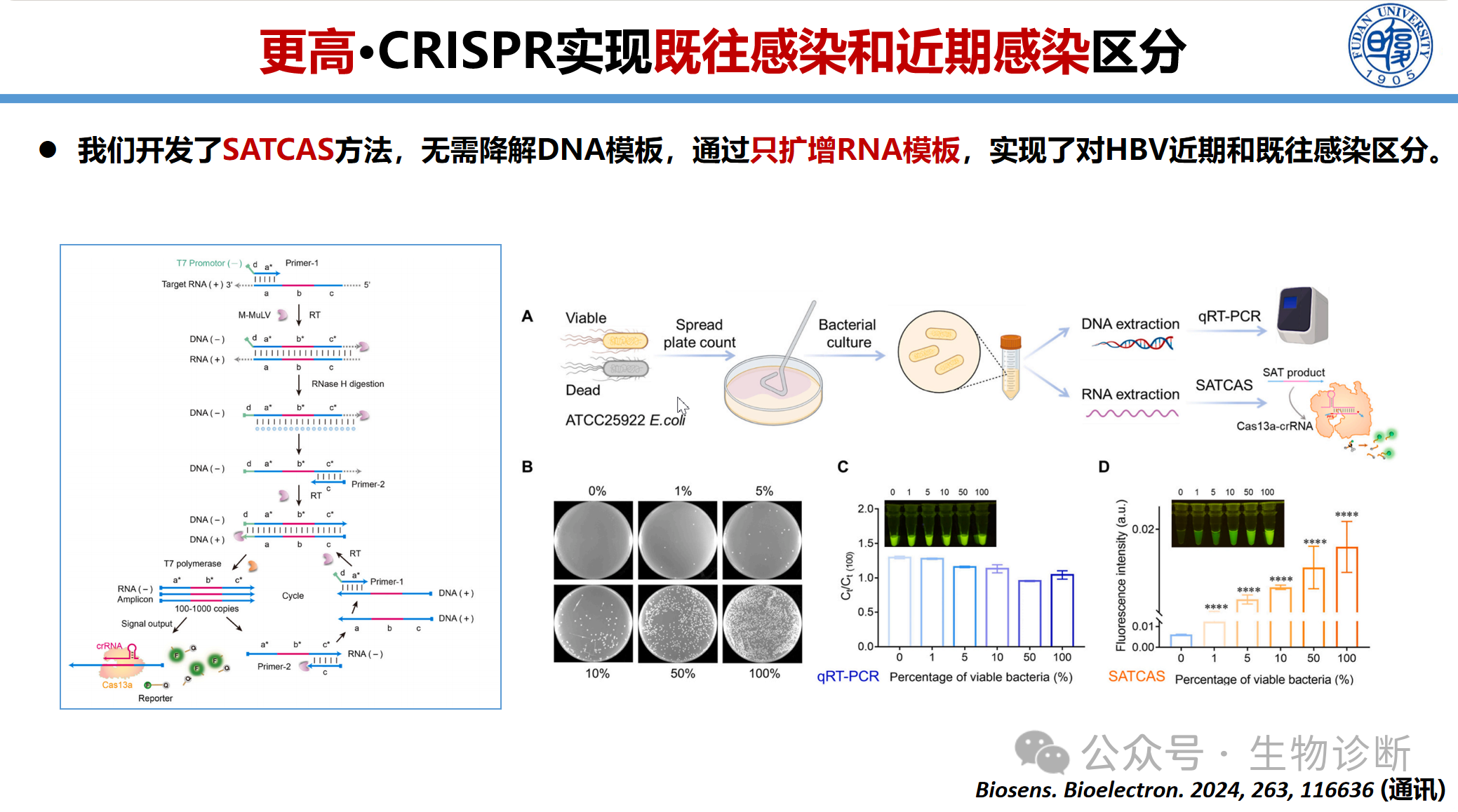 开发特异性RNA检测技术(SATCAS)区分HBV既往感染与近期感染: