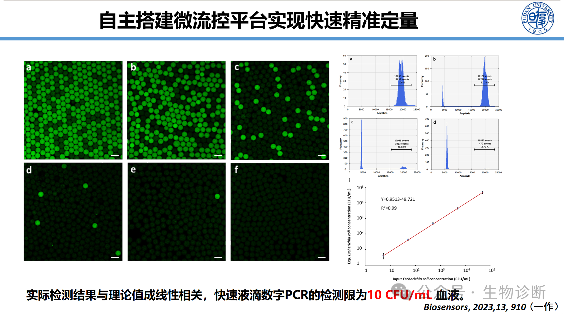 技术优势:每个液滴独立反应,实现"相对降噪",检测限达10 CFU/mL血液