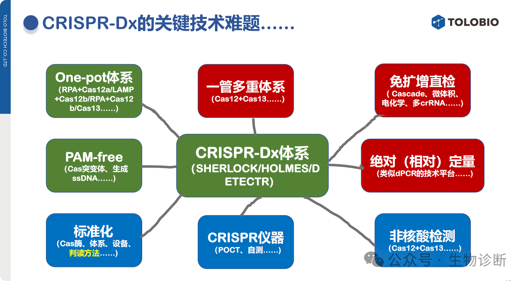 发展方向:攻克单酶多探针多重检测技术,减少体系中蛋白数量,提升检测稳定性与可调节性。