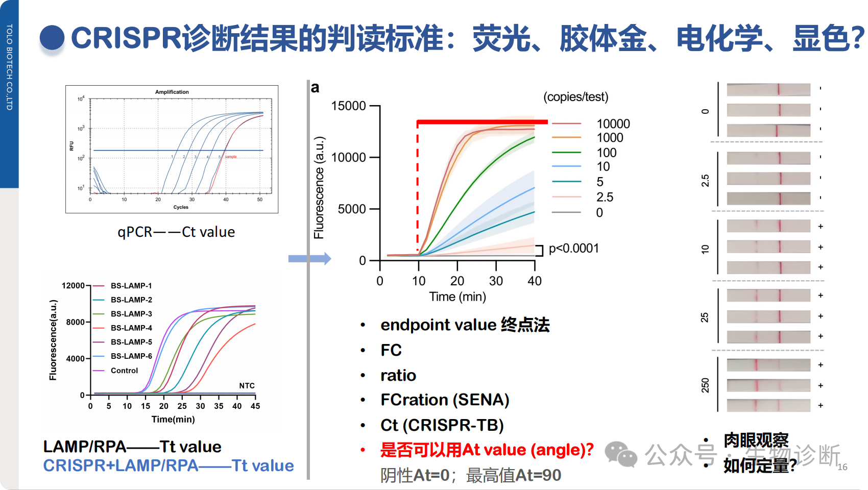 探索Tt值(恒温扩增常用指标)、Ct值(CRISPR-TB方法)、终点法信号值等定量判据。