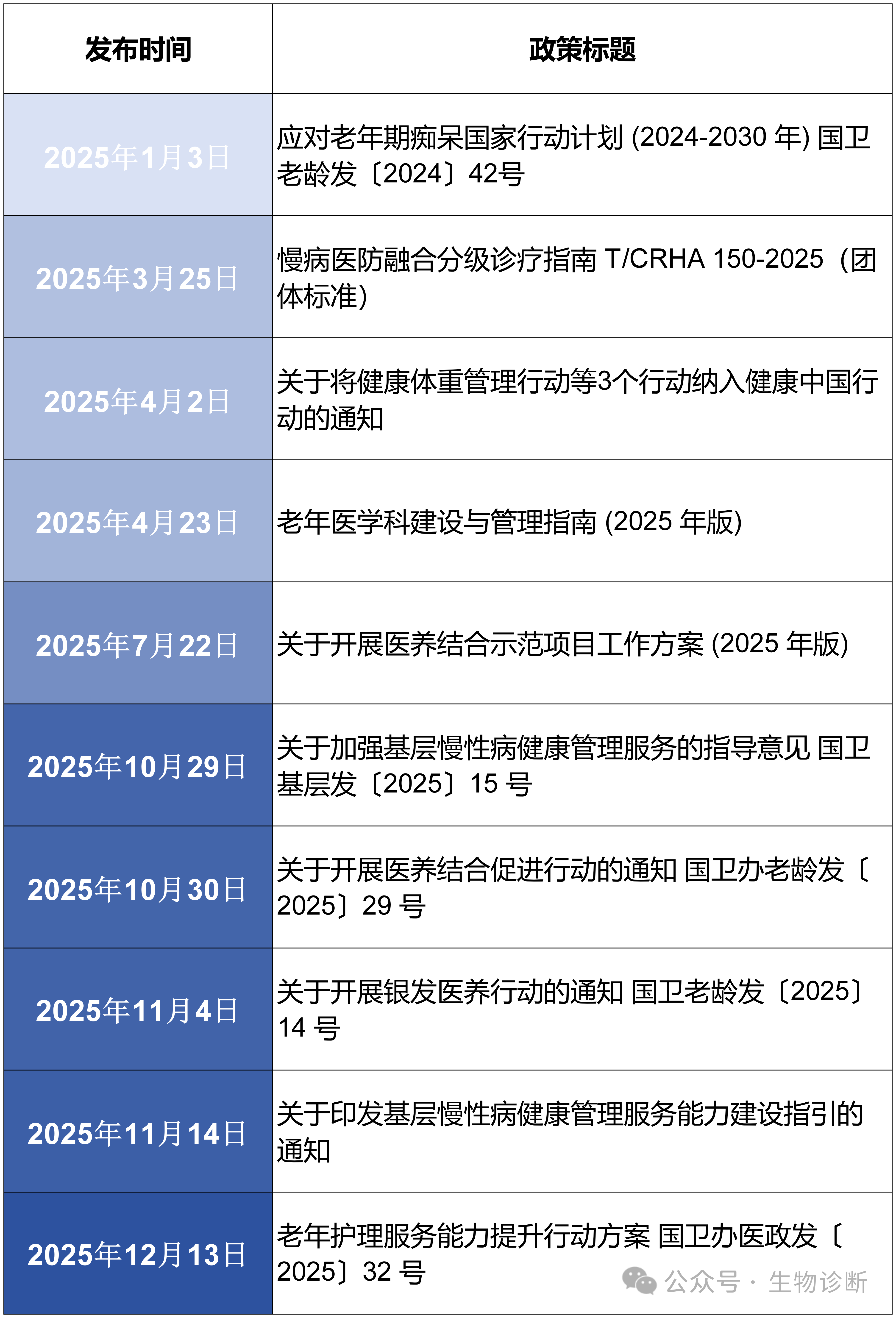 与基层医疗建设密切相关,2025年发布的老龄化与慢病管理国家级政策至少有 10 项。